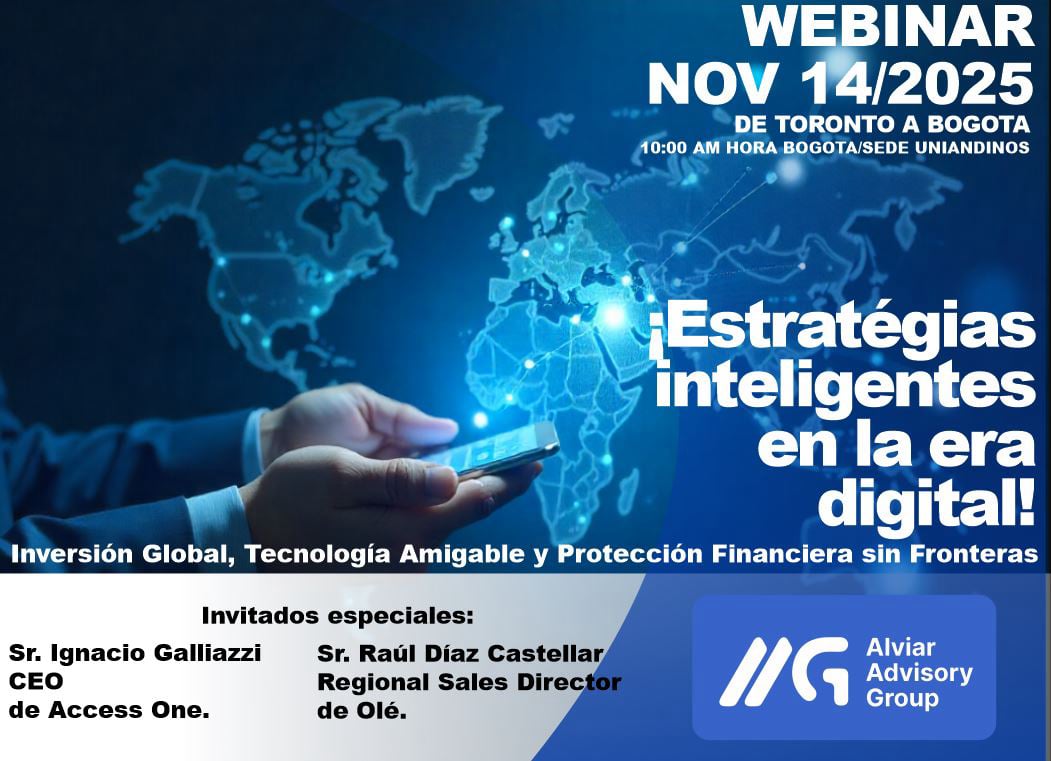 Oscar Alviar saluda desde Toronto, Canadá, donde asistimos a inversionistas colombianos en la apertura de cuentas. Alviar Advisory Group, (AAG) compuesto por expertos en protección patrimonial, representa firmas especializadas en ahorro e inversión extranjera.